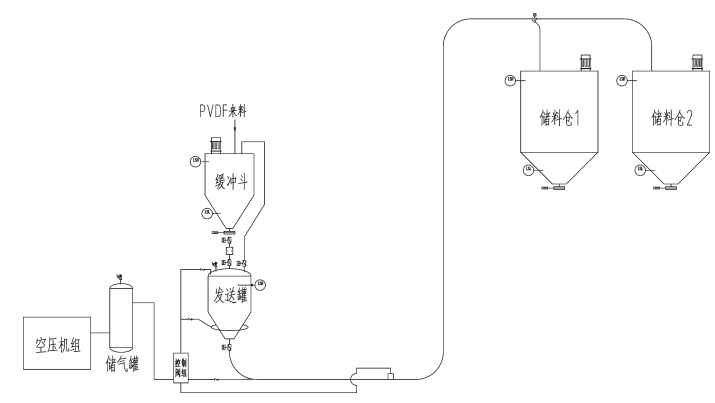 (1)氣力輸送為封閉式輸送,可以防止粉料散落,過程由PLC系統控制輸送,自動化程度高,減少人力成本;