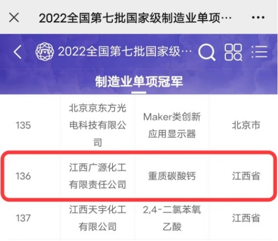 中國“重鈣第一強”企業憑借超細重鈣入圍“單項冠軍示范企業”榜單。