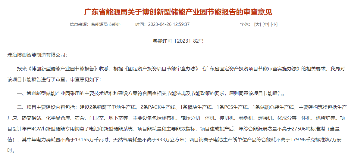 中國粉體網(wǎng)訊 近日,廣東省能源局發(fā)布了《廣東省能源局關于博創(chuàng)新型儲能產(chǎn)業(yè)園節(jié)能報告的審查意見》。