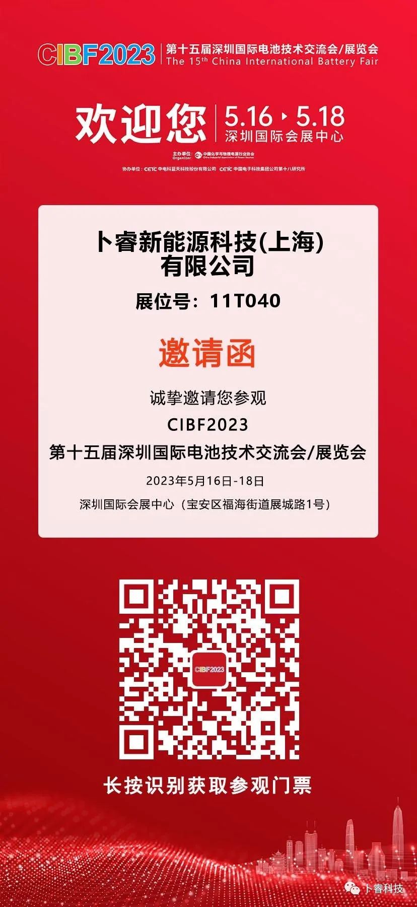 CIBF2023第十五屆中國國際電池技術交流會/展覽會,將于5月16至18日在深圳舉行,卜睿新能源科技(上海)有限公司作為鋰電新能源成套粉體工程設備服務商參加此次盛會,為鋰電產業健康發展貢獻卜睿力量!