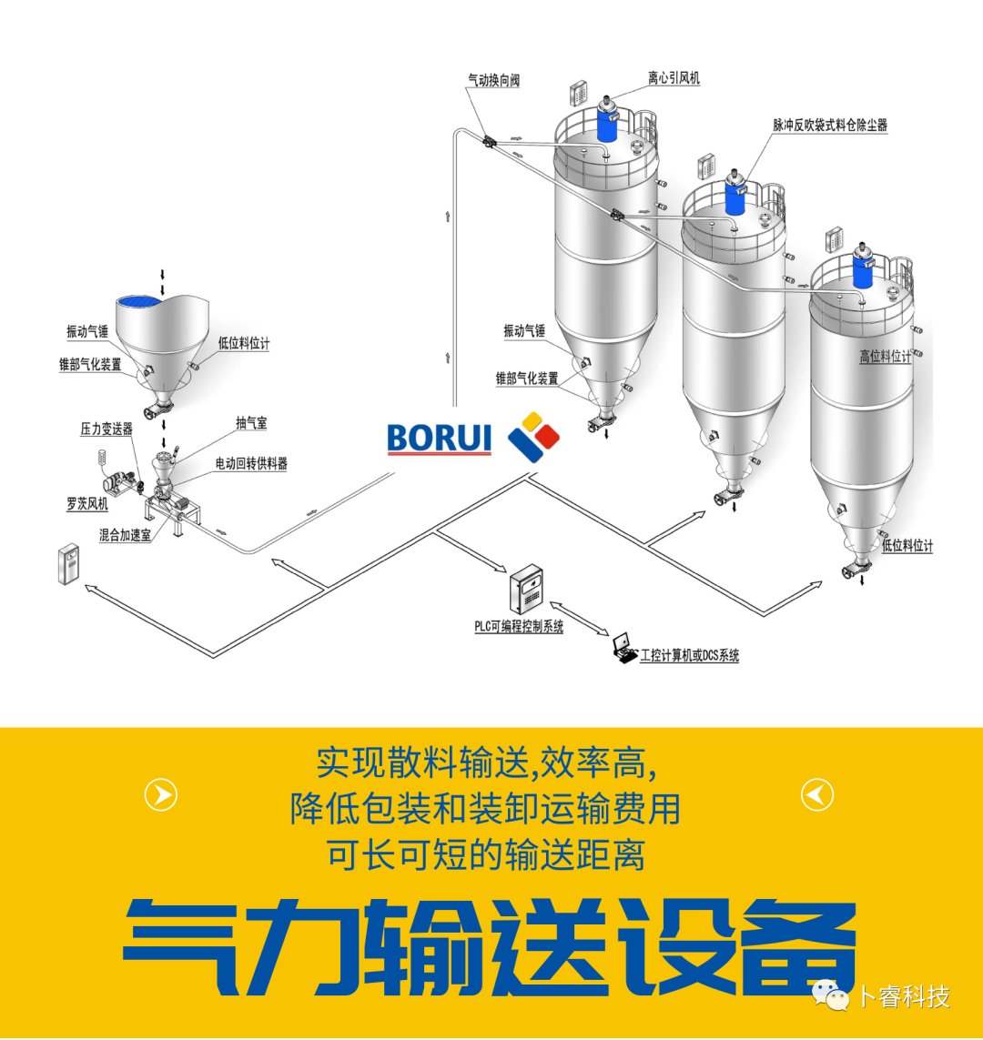 氣力輸送系統:提供負壓輸送設備&正壓輸送設備,管道密閉輸送,杜絕粉塵環境污染,改善工作環境,同時減少環境及人員對物料的污染,提高潔凈度。
