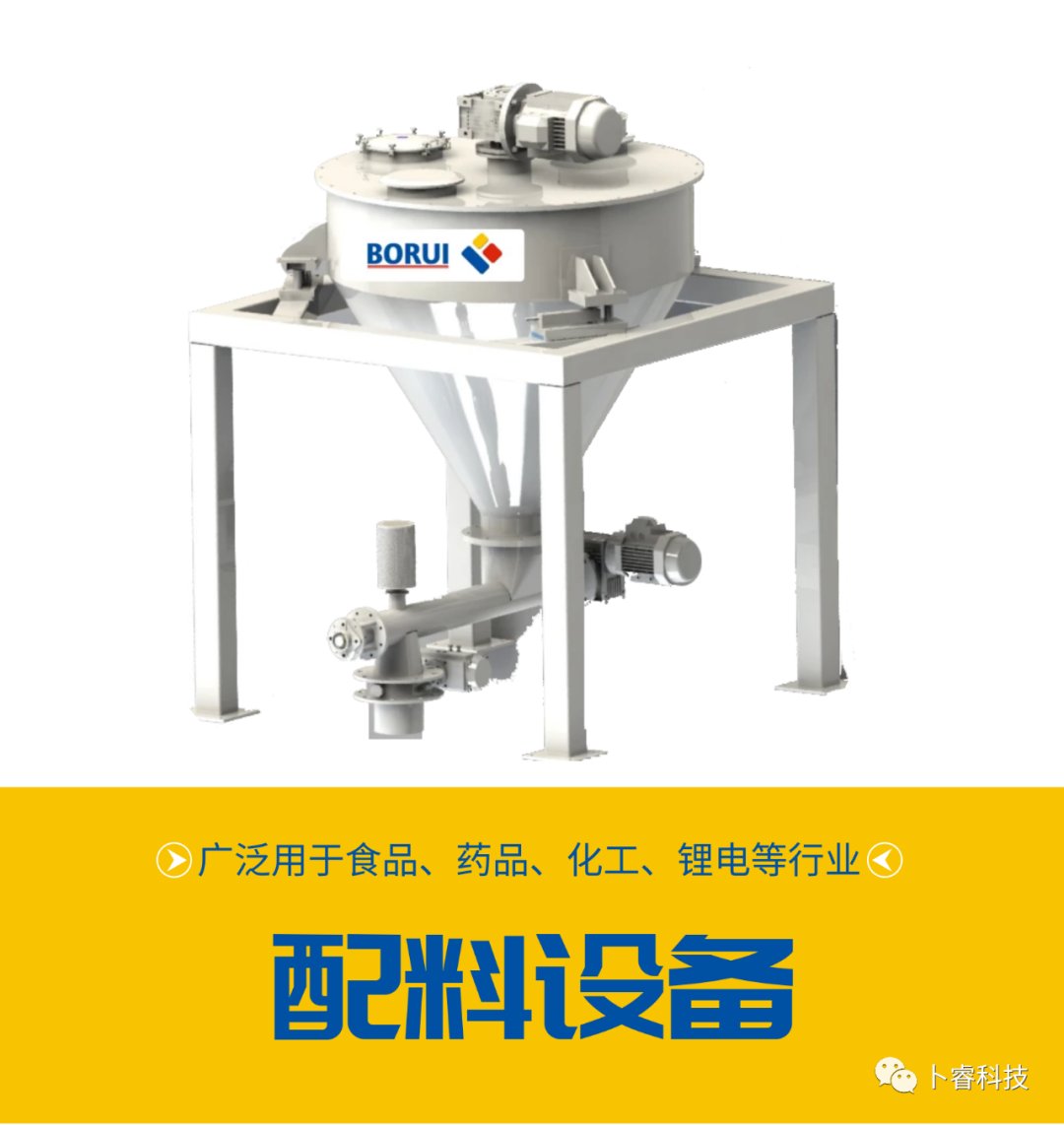 配料設備:主要由投料站、真空輸送機、緩存倉、失重稱、高速混合機等構成,適用于多種粉料的從拆包裝到混合的生產過程,廣泛用于食品、藥品、化工、鋰電等行業。