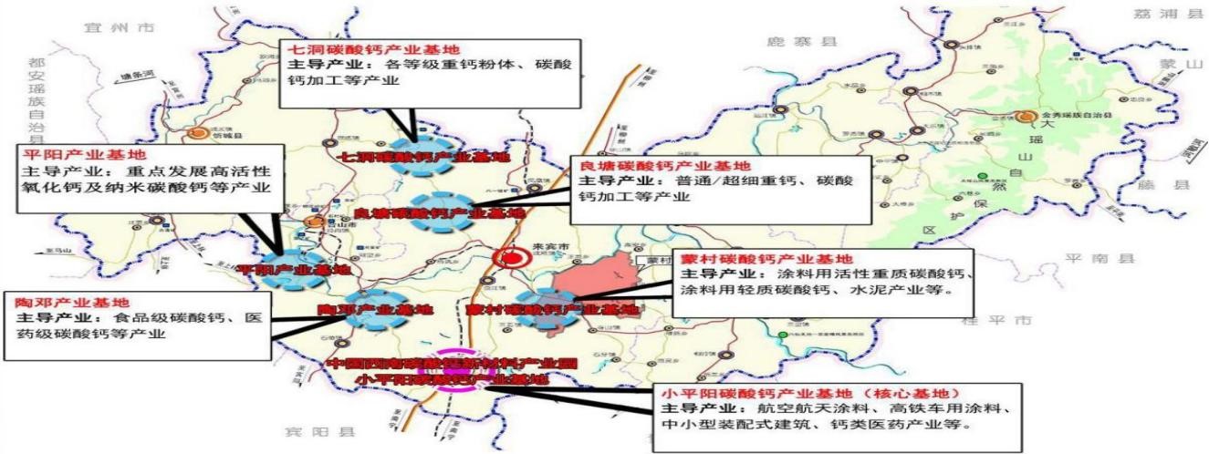 中國西南碳酸鈣新材料產(chǎn)業(yè)園(興賓區(qū)碳酸鈣產(chǎn)業(yè)基地)產(chǎn)業(yè)布局示意圖