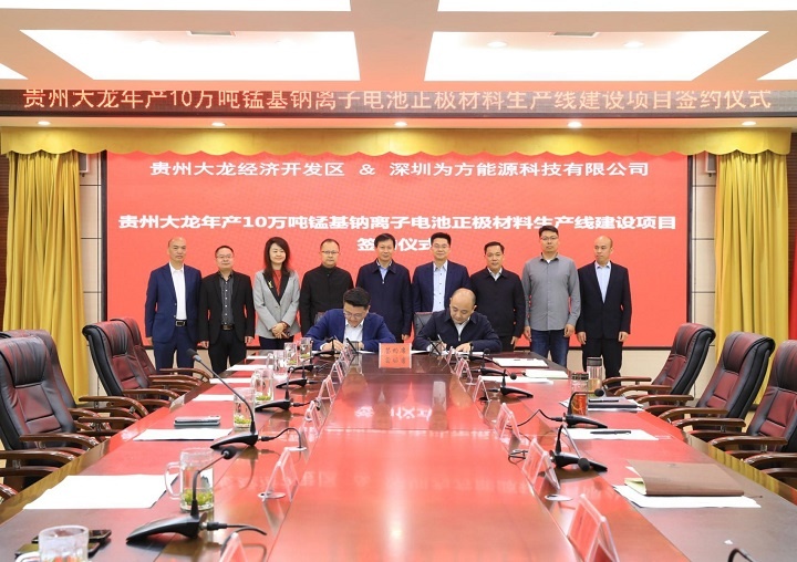 貴州大龍年產10萬噸錳基鈉離子電池材料生產線建設項目投資合作簽約儀式。(企業供圖)