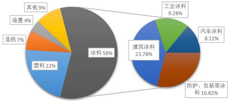 鈦白粉應用場景眾多,主要下游行業為涂料行業和塑料行業,而涂料和塑料在各個行業應用也非常廣泛。在發展中國家,由于經濟不斷發展及人口眾多,發展中國家的建筑和基建行業快速增長,將刺激涂料及其上游鈦白粉產品的需求增加。同時,由于價格優勢及氯化法產能擴大,中國鈦白粉企業在全球市場的競爭力也在逐步提升。