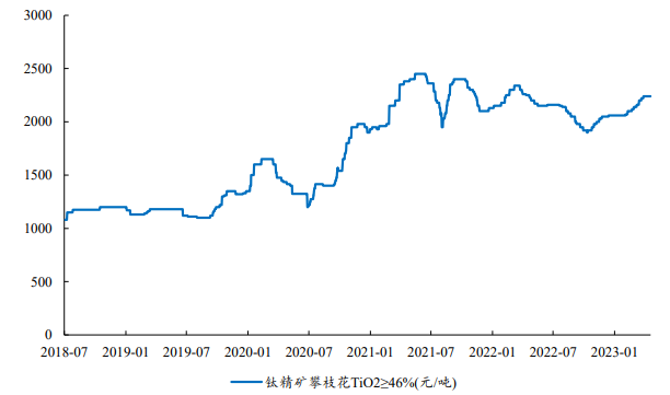 2022年,鈦礦價格保持在高位,鈦白粉市場高開低走。金紅石型鈦白粉市場受主要原材料(鈦精礦、硫酸)價格波動較大、新增產能逐步釋放、部分下游行業需求疲軟等因素的影響,呈現“整體供需偏弱,價格階段下滑”的業態。