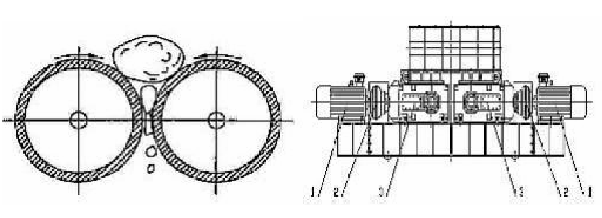 雙輥式破碎機(jī)的工作原理及結(jié)構(gòu)示意圖