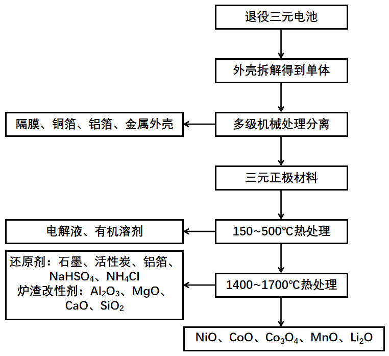 直接回收技術一般是指從失效材料的成分和結構入手,在不需要破壞材料固有結構的基礎上,針對性地解決材料的失效問題,實現結構再生,從而恢復材料的電化學活性。該方法實現從獲得單質元素向獲得化合物、間接回收向直接回收轉變。