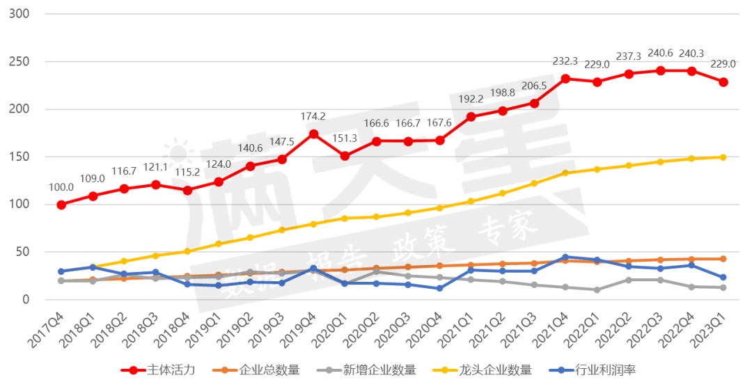 圖2 2017Q4-2023Q1中國鋰電產業發展指數主體活力維度指標值