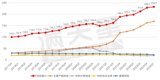 圖6 2017Q4-2023Q1中國鋰電產業發展指數供給能力維度指標值