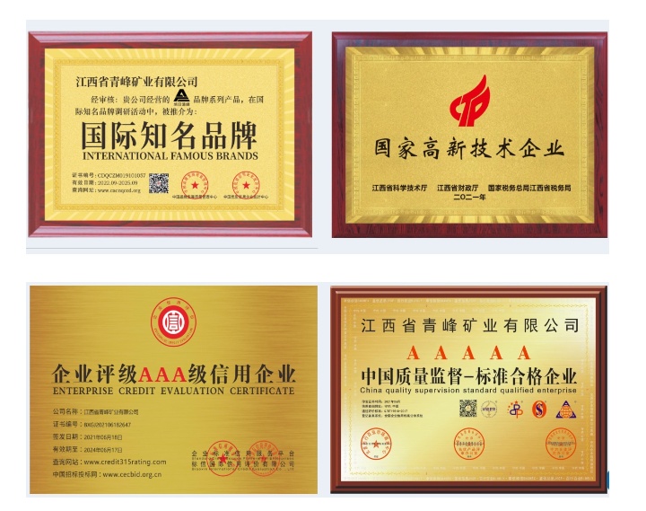 國際知名品牌江西省青峰礦業有限公司是國內首家專業從事石英石原礦、石英砂環保酸洗設備制造與石英砂酸洗提純技術研發的科技型企業。由我公司自主研發的國家專利產品“非金屬礦石除鐵酸洗設備”為國內外眾多石英加工企業解決了石英砂除鐵增白難的問題,并授予為“中國綠色環保設備”“全國節能綠色環保推廣產品”,得到了中科院、中國非金屬研究院等有關部門領導的高度重視。我公司共獲得“新型電加熱在酸洗中的應用”等20余項國家專利。