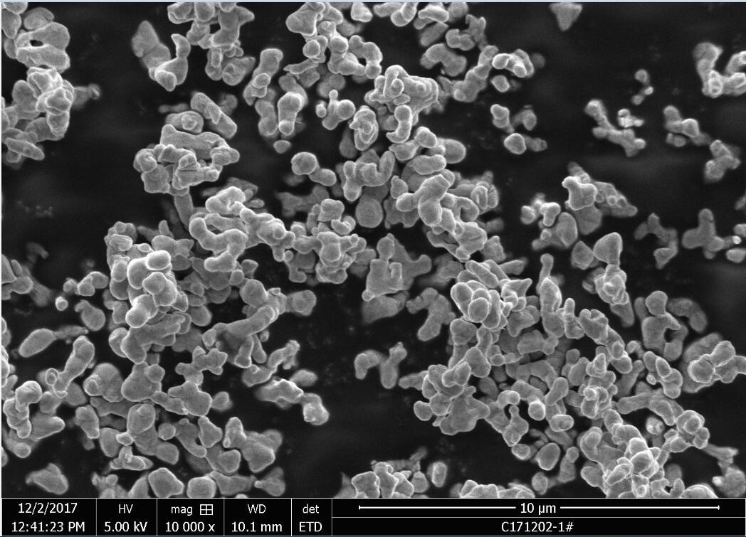 國內(nèi)鈷粉的生產(chǎn)主要是采用還原法,該方法是通過化學(xué)沉淀法制備草酸鈷粉末,再經(jīng)過煅燒氫還原而得到鈷粉。從鈷粉粒度來看,國內(nèi)生產(chǎn)的鈷粉粒度一般為1.0~3.0μm,僅有個別廠家可以批量生產(chǎn)1.0μm以下的鈷粉;從鈷粉形貌來看,一般采用還原法制備的鈷粉其形貌呈樹枝狀;從化學(xué)純度來看,與國外先進(jìn)生產(chǎn)廠家相比,國內(nèi)鈷粉化學(xué)純度較低。
