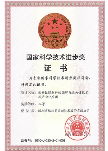 格林美廢棄鈷鎳材料的循環(huán)再造關(guān)鍵技術(shù)及產(chǎn)業(yè)化應(yīng)用,是中國在該領(lǐng)域居世界領(lǐng)先地位的核⼼技術(shù),于2010年獲得國家科技進(jìn)步二等獎。2020年,格林美循環(huán)再造的超細(xì)鈷粉入選第五批全國制造業(yè)單項冠軍產(chǎn)品。