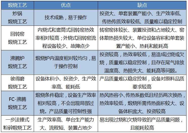 不同煅燒工藝的優缺點