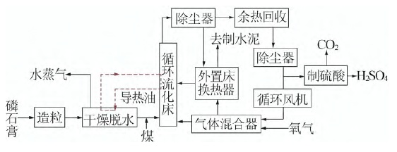 此外,張磊等提出了磷石膏煤循環流化床煅燒分解制硫酸聯產鈣基材料工藝,以擴大磷石膏綜合利用范圍。