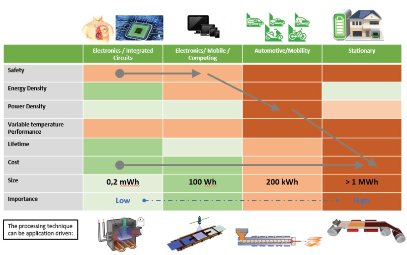 【圖1】固態電池(SSB)的工業應用,取決于其性能指標和尺寸。