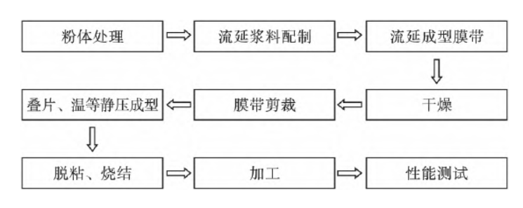 經研究實踐可知,溶劑體系、流延膜帶厚度以及脫粘燒結工藝參數等是制備過程的關鍵,其控制是否妥當會影響最終基板的厚度及厚度均勻性、外觀質量和表面粗糙等工程應用指標。