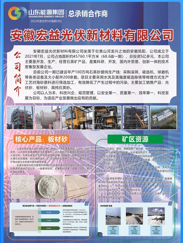 安徽宏益光伏新材料與您相約臨沂!第三屆全國板材用石英砂供需洽談會(huì)