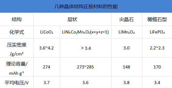 目前已開發的正極材料根據結構主要可以分為層狀、橄欖石型和尖晶石型。