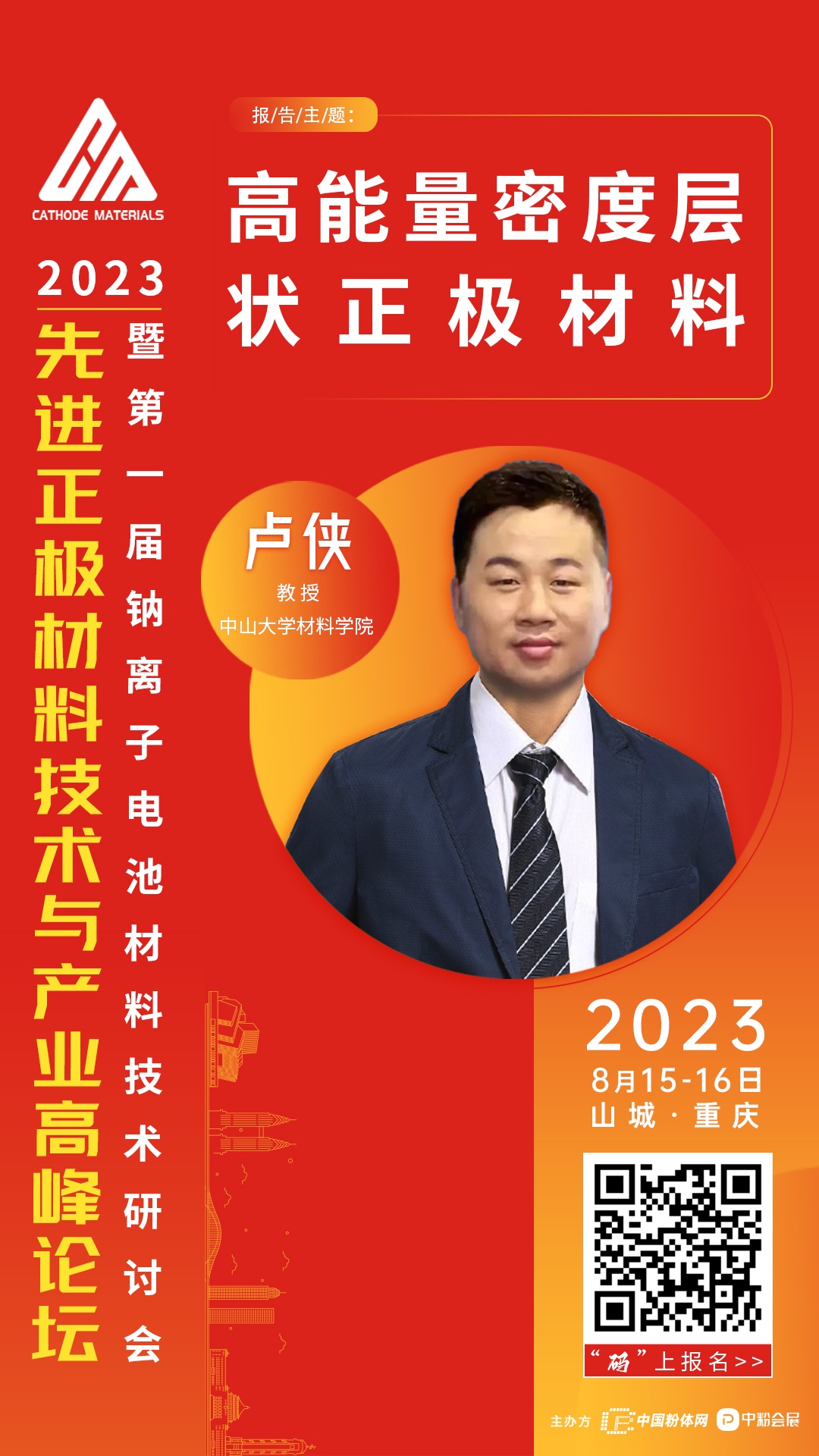 2023年8月,中國粉體網將在山城重慶舉辦“2023先進正極材料技術與產業高峰論壇暨第一屆鈉離子電池材料技術研討會”。我們有幸邀請到中山大學材料學院的盧俠教授為我們帶來題為《高能量密度層狀正極材料》的報告。