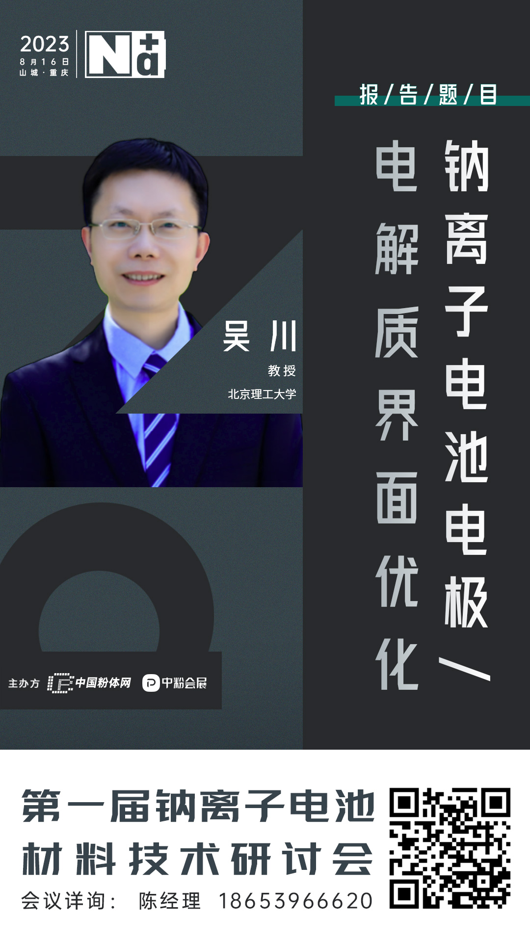 2023年8月,中國粉體網將在山城重慶舉辦“2023先進正極材料技術與產業高峰論壇暨第一屆鈉離子電池材料技術研討會”。我們有幸邀請到北京理工大學的吳川教授為我們帶來題為《鈉離子電池電極/電解質界面優化》的報告。吳教授通過分析電解液在電極表面SEI的結構組成差異,揭示電解液有利于快速儲鈉動力學的界面機制,設計構筑原位包覆層在負極實現電解液中優化SEI,設計表面惰性包覆層穩定層狀正極晶體結構與界面結構,從而提升鈉離子電池的綜合性能。