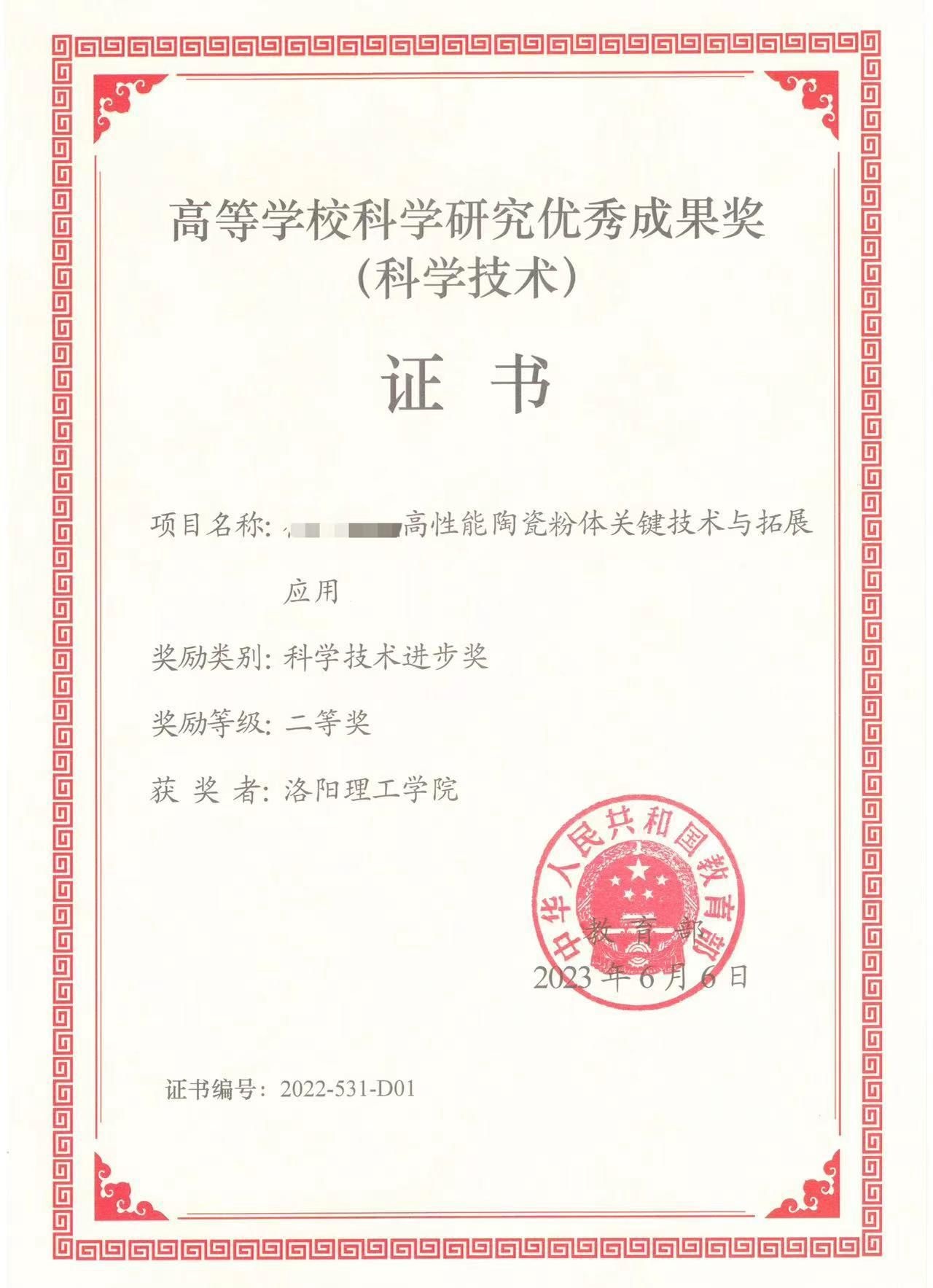 中國(guó)粉體網(wǎng)訊 近日,教育部公布了2021、2022年度高等學(xué)校科學(xué)研究?jī)?yōu)秀成果獎(jiǎng)(科學(xué)技術(shù))獲獎(jiǎng)名單,洛陽(yáng)理工學(xué)院張銳教授牽頭完成的項(xiàng)目榮獲科學(xué)技術(shù)進(jìn)步獎(jiǎng)二等獎(jiǎng),這是洛陽(yáng)理工首次牽頭獲得該類獎(jiǎng)項(xiàng)。