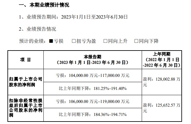 中國粉體網訊 7月17日,德方納米發布2023年半年度業績預告,公司預計1-6月歸母凈利潤虧損10.4億元至11.7億元。相比之下,去年同期為盈利12.8億元;預計扣非后歸母凈利潤虧損10.6億元至11.9億元。