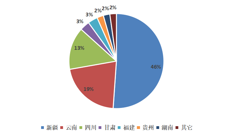 從產業鏈布局的角度來看,工業硅生產企業主要分布在資源豐富以及擁有電力優勢的地區。我國目前是全球最大的工業硅生產國、消費國和貿易國,且未來該產業的主要增量也將來源于我國。我國工業硅產能主要分布在電力資源充沛的西北、西南地區,目前主要集中在新疆、云南、四川。