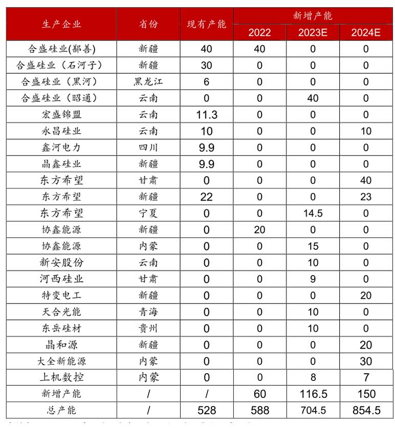 來源:百川盈孚、中國有色金屬工業協會硅業分會