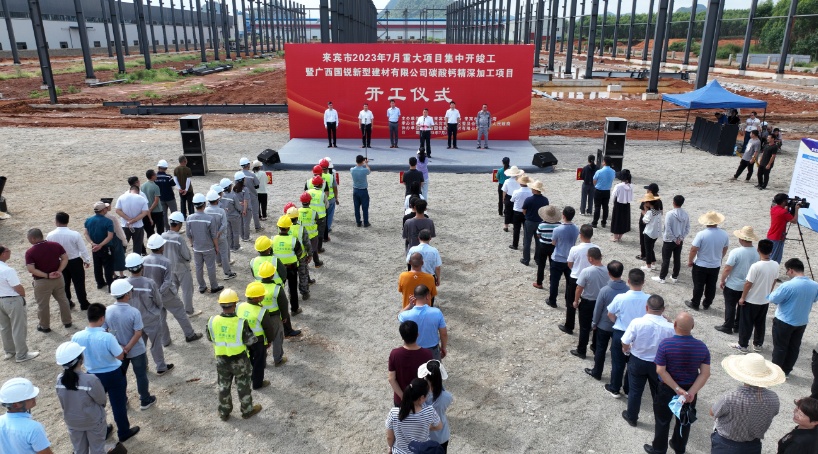 中國(guó)粉體網(wǎng)訊 7月20日,來(lái)賓市2023年7月重大項(xiàng)目集中開(kāi)竣工暨廣西國(guó)銳新型建材有限公司碳酸鈣精深加工項(xiàng)目開(kāi)工儀式,在興賓區(qū)石牙鎮(zhèn)石牙產(chǎn)業(yè)園區(qū)舉行。