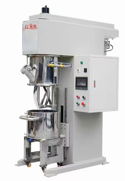 所謂雙行星,就是有以太陽輪為中心的公轉的行星箱及及安裝在行星箱上圍繞行星箱旋轉并自傳的攪拌槳組成的雙行星系統。雙行星攪拌機主要針對粉體及液體之間捏合攪拌、混合及分散作用,使混合料在桶內做復雜運動,受到強烈分散、擠壓攪拌最終得到均勻的漿料,并可通過抽真空的方式去除漿料內的氣泡。