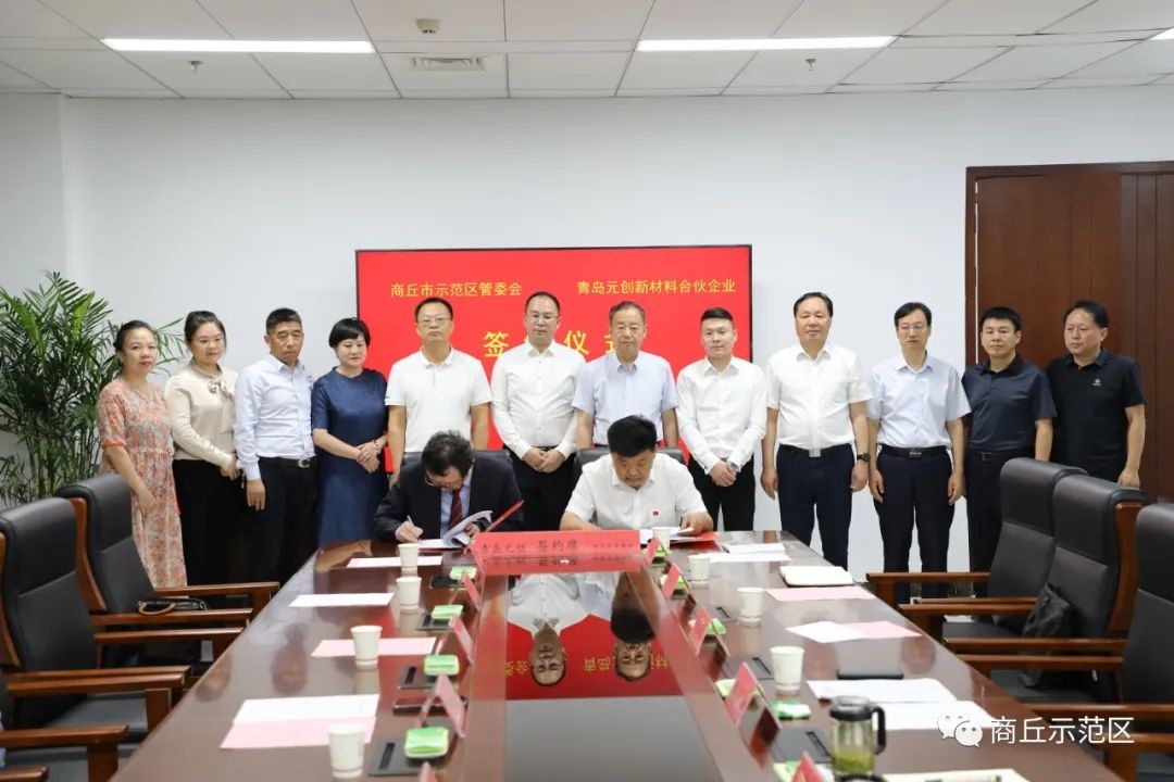 市領導梁萬濤,市精神文明建設促進中心主任呂文松,青島元創新材料科技合伙企業董事長周水杉,示范區黨工委書記、商丘經濟技術開發區黨工委副書記王新勝,示范區黨工委副書記、管委會主任、商丘經濟技術開發區黨工委副書記、管委會主任張峰,新城建設投資集團主要負責同志及示范區領導馮新出席簽約儀式。
