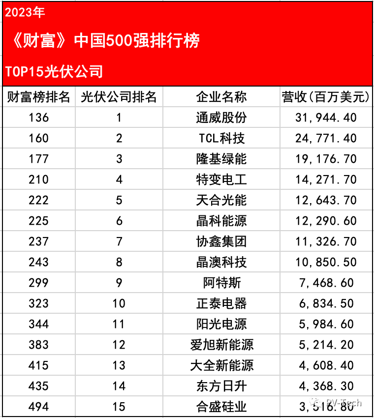 中國粉體網訊 日前,2023年《財富》中國500強排行榜發布。光伏企業勢頭強勁,多達15家!