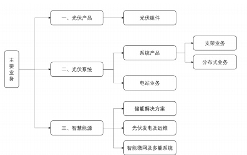 東方日升(300118)主要業務包括晶體硅料、太陽能電池片、組件、新材料、光伏電站、儲能集成系統及智能燈具等,具體如下圖所示: