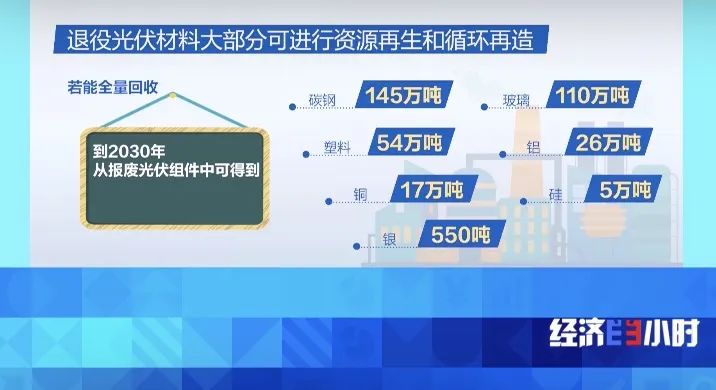 中國光伏行業協會副秘書長 江華:我們預測到2041年光伏組件回收處理的產值會到100億元,到2047年會達到200億元,除了這些可以再生利用的元素的價值之外,在整個光伏組件處理的生命周期內,運輸、儲存等等都會產生相應的經濟價值。
