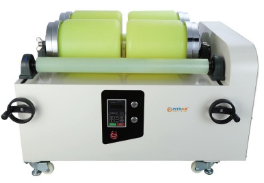 滾筒球磨機是一款粉在體研磨和混合環節中較為關鍵的基礎設備。工作原理在于一根主軸連接電機、皮帶輪、軸承作傳動,主軸與罐體之間產生相對運動,即與球磨罐表面產生摩擦帶動另一根被動軸實現滾動,整體輻軸外襯耐磨聚氨酯套,提高摩擦系數及防止罐體滑落變形。米淇滾筒球磨機品種與規格齊全。主要產品系列有:干磨型球磨機、濕磨型球磨機、內襯型球磨機、磨篩型球磨機、實驗型球磨機、各種定制型等等。