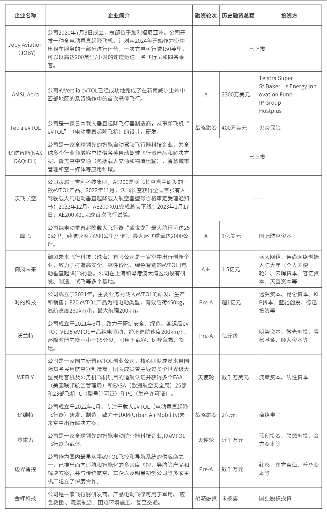 國內(nèi)外eVTOL企業(yè)梳理(來源:第一財經(jīng))
