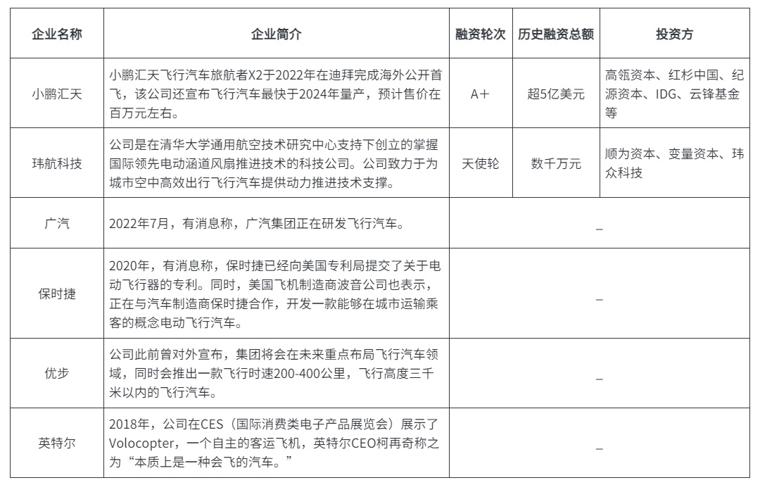 國內(nèi)外飛行汽車企業(yè)梳理(來源:第一財經(jīng))