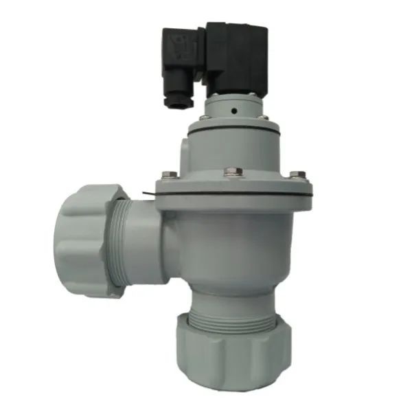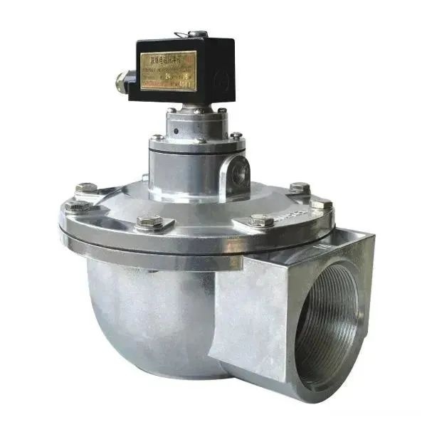 外螺紋式電磁脈沖閥由電磁先導頭、膜片和閥體組成,膜片后腔的面積大于前腔的面積,氣壓作用力大,使膜片處在關(guān)閉位置。電控儀輸入電信號,使電磁先導頭吸合動柱,打開卸荷孔,膜片后腔的壓力氣體迅速排出,膜片前腔的壓力氣體將膜片抬起,打開通道,脈沖閥進行噴吹。電脈沖信號消失,電磁先導頭的彈簧使動柱立即復位封閉卸荷孔,膜片后腔氣體壓力和彈簧作用力使膜片關(guān)閉通道,閥停止噴吹。膜片上的阻尼孔,當先導頭動柱抬起氣體壓力卸荷時,起到阻尼氣流的作用,當卸荷孔封閉時,使壓力氣體迅速充滿到后腔,使膜片關(guān)閉通道,停止噴吹。