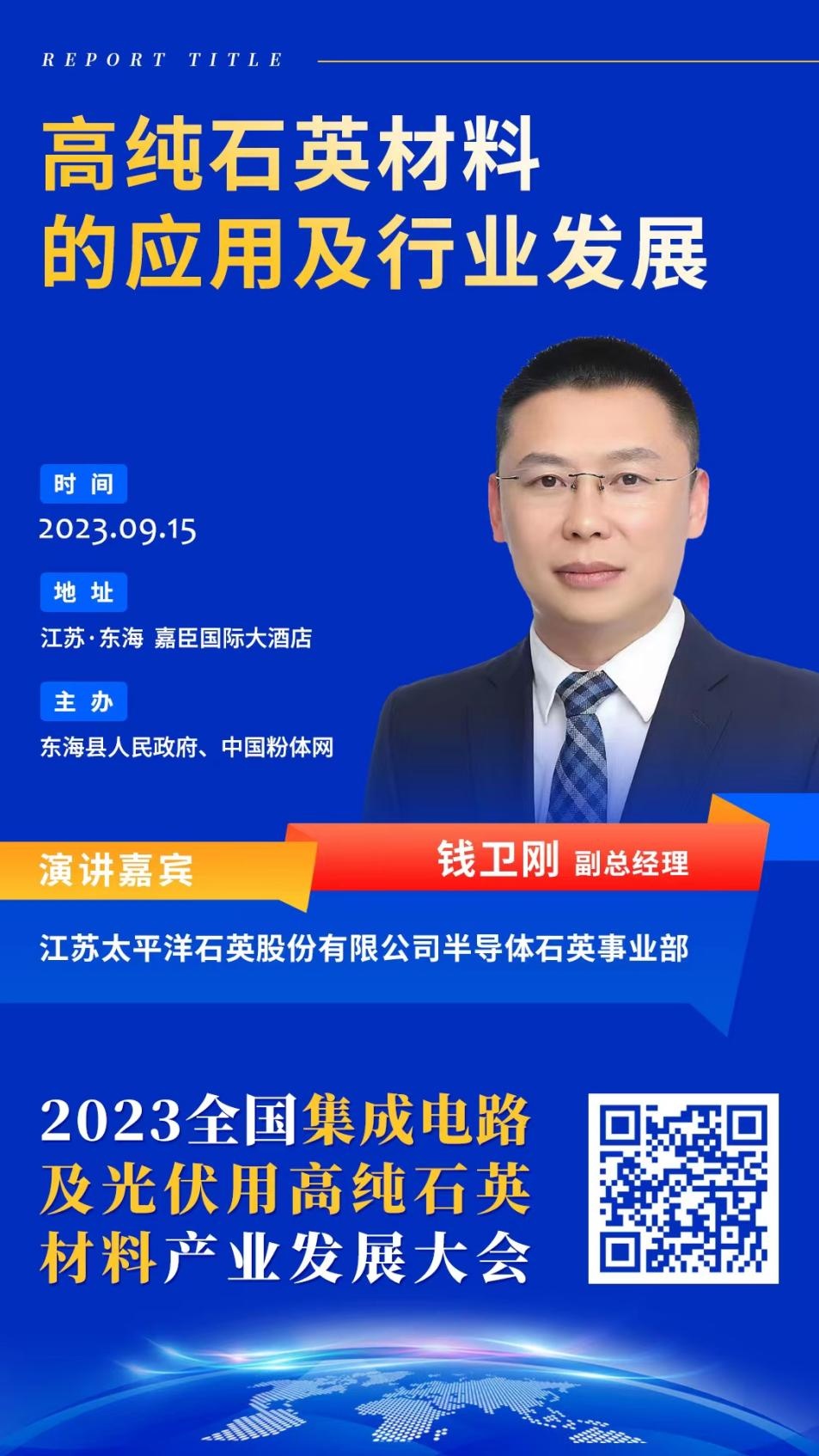 2023年9月15日,中國粉體網聯合東海縣人民政府將于東海縣嘉臣國際大酒店舉辦“2023全國集成電路及光伏用高純石英材料產業發展大會”,屆時,來自江蘇太平洋石英股份有限公司半導體石英事業部的錢衛剛副總經理將作《高純石英材料的應用及行業發展》報告,詳細講述高純石英材料的應用現狀、存在的問題與挑戰,以及行業發展的趨勢與機遇。