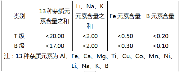 單晶硅生長用石英坩堝的雜質元素含量要求(單位為微克每克)