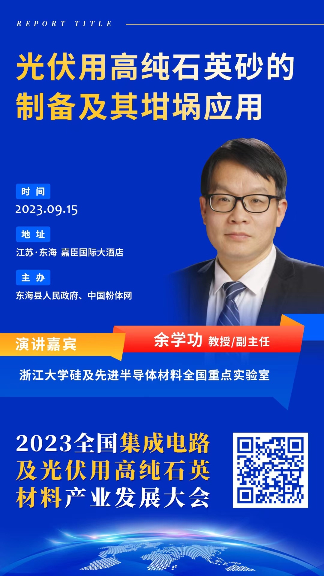 2023年9月15日,中國粉體網聯合東?h人民政府將于東?h嘉臣國際大酒店舉辦“2023全國集成電路及光伏用高純石英材料產業發展大會”,屆時,來自浙江大學硅及先進半導體材料全國重點實驗室的余學功教授將作《光伏用高純石英砂的制備及其坩堝應用》報告,詳細講述石英坩堝在光伏領域中的應用以及光伏用高純石英砂的制備。