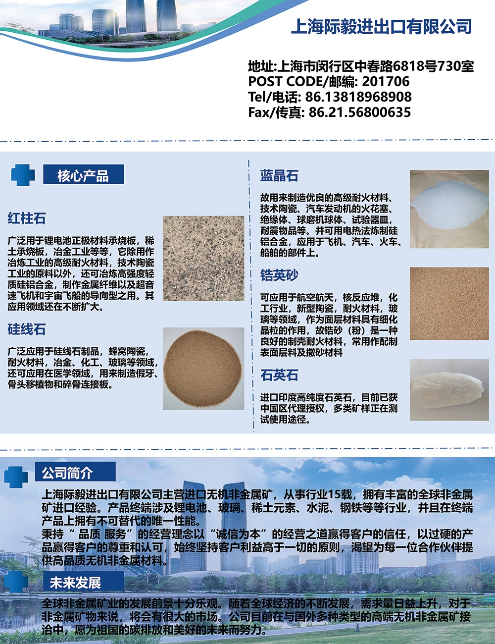 由中國粉體網主辦的“2023全國集成電路及光伏用高純石英材料產業發展大會”將于9月15號在東海舉辦,上海際毅進出口有限公司您一同參加。