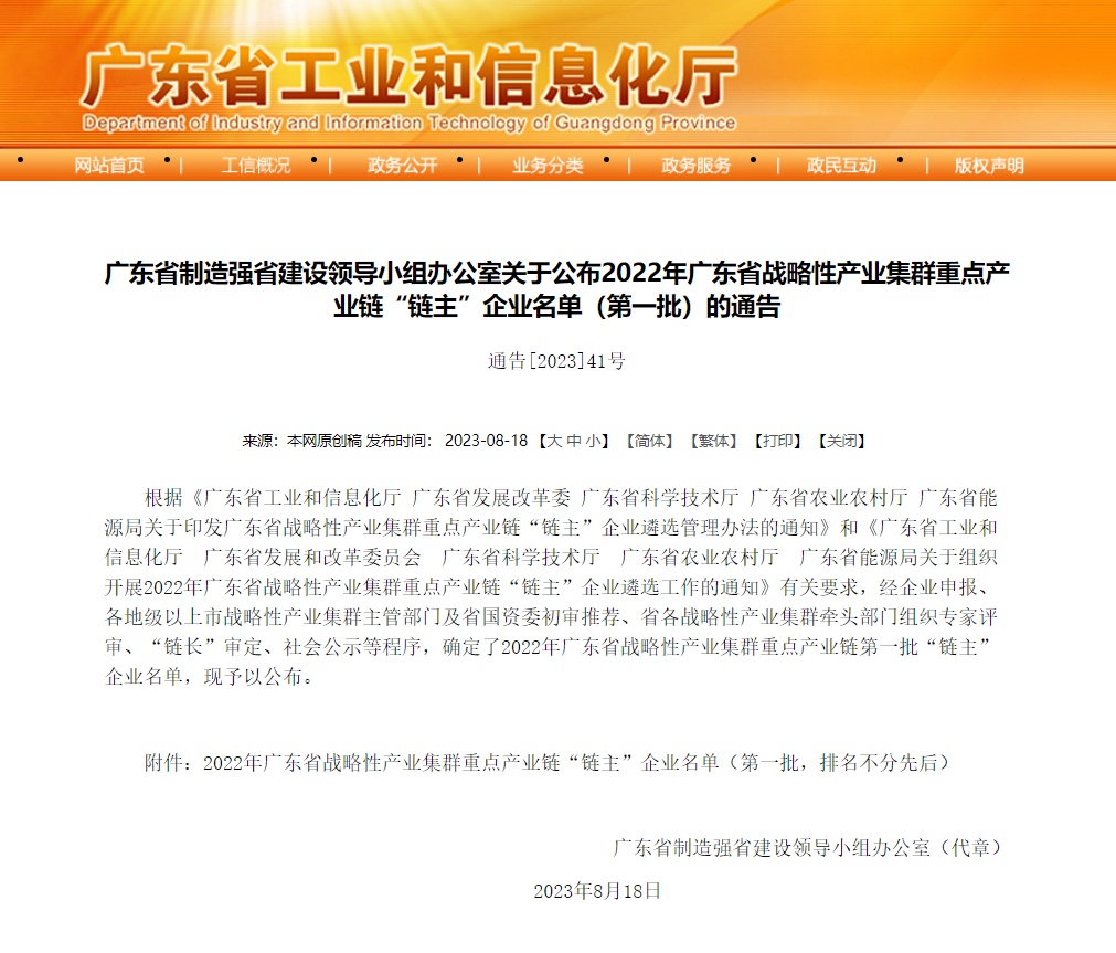 根據(jù)《廣東省戰(zhàn)略性產(chǎn)業(yè)集群重點(diǎn)產(chǎn)業(yè)鏈“鏈主”企業(yè)遴選管理辦法》, 產(chǎn)業(yè)鏈“鏈主”企業(yè)是指處于產(chǎn)業(yè)鏈供應(yīng)鏈核心優(yōu)勢(shì)地位,對(duì)于優(yōu)化資源配置、技術(shù)產(chǎn)品創(chuàng)新和產(chǎn)業(yè)生態(tài)構(gòu)建有重大影響力的企業(yè),有能力且有意愿對(duì)增強(qiáng)廣東產(chǎn)業(yè)鏈供應(yīng)鏈穩(wěn)定性和競(jìng)爭(zhēng)力、健全和壯大產(chǎn)業(yè)體系發(fā)揮重要作用的企業(yè)。