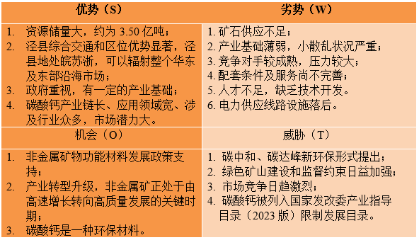 宣城涇縣碳酸鈣產業發展SWOT分析