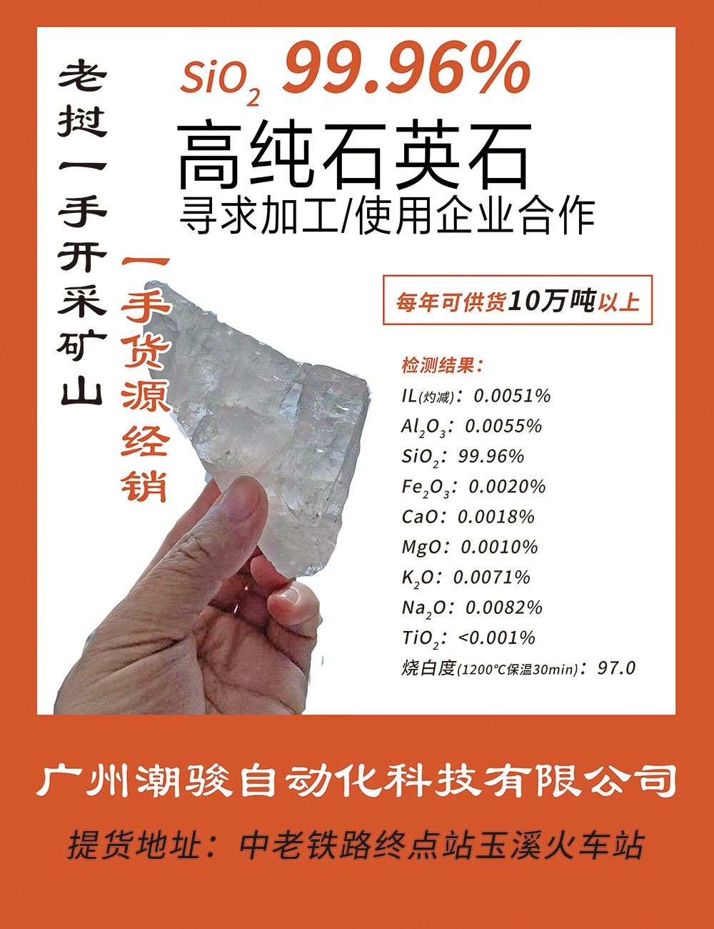 由中國粉體網主辦的“2023全國集成電路及光伏用高純石英材料產業發展大會”將于9月15號在東海舉辦,廣州潮駿自動化科技有限公司邀您一同參加。