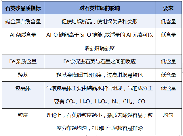 石英坩堝對于石英砂的品質需求