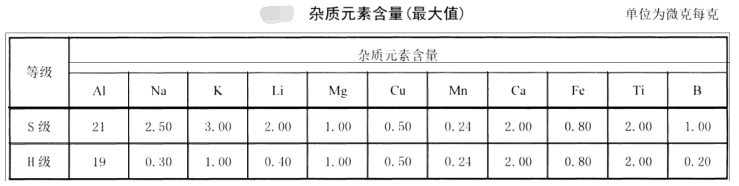 石英玻璃基板中Al、Fe、Ca、Mg、Ti、Cu、Co、Mn、Ni、Li、Na、K、B等13種雜質元素含量的質量分數總和應不大于2.0μg/g。其中Li、Na、K3種雜質元素含量的質量分數之和應不大于1.0μg/g,單一雜質元素含量的質量分數應不大于0.5μg/g。