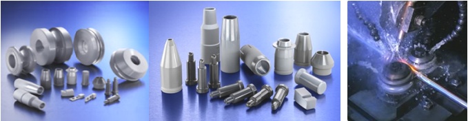 氮化硅陶瓷氣壓燒結(jié)技術(shù)的發(fā)展,使得制備外形復(fù)雜的氮化硅陶瓷材料成為可能,極大地拓展了氮化硅材料的使用場景,如現(xiàn)代工業(yè)中必不可少的焊接領(lǐng)域。下圖為德國賽朗泰克公司制備出的氮化硅陶瓷焊接銷,焊接滾輪使用壽命遠高于傳統(tǒng)材料,并在投影焊接中實現(xiàn)了極高的精確度。而且氮化硅焊接部件在使用過程中更加耐磨和不易黏結(jié),具有更長的使用壽命和更低的使用成本。