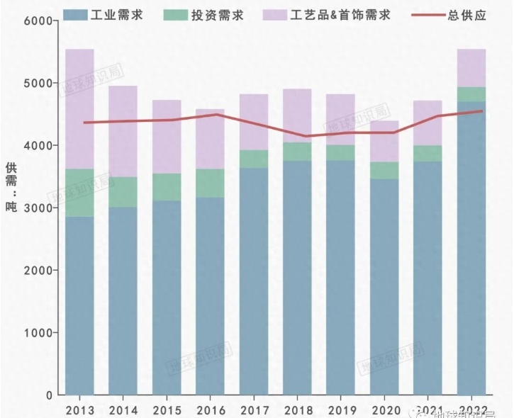 根據世界白銀協會統計,2023年全球白銀供給量在2.5萬噸至2.6萬噸,缺口大約在4000噸左右,庫存也處于歷史低位。業內人士認為,2023年白銀價格或將震蕩上行。